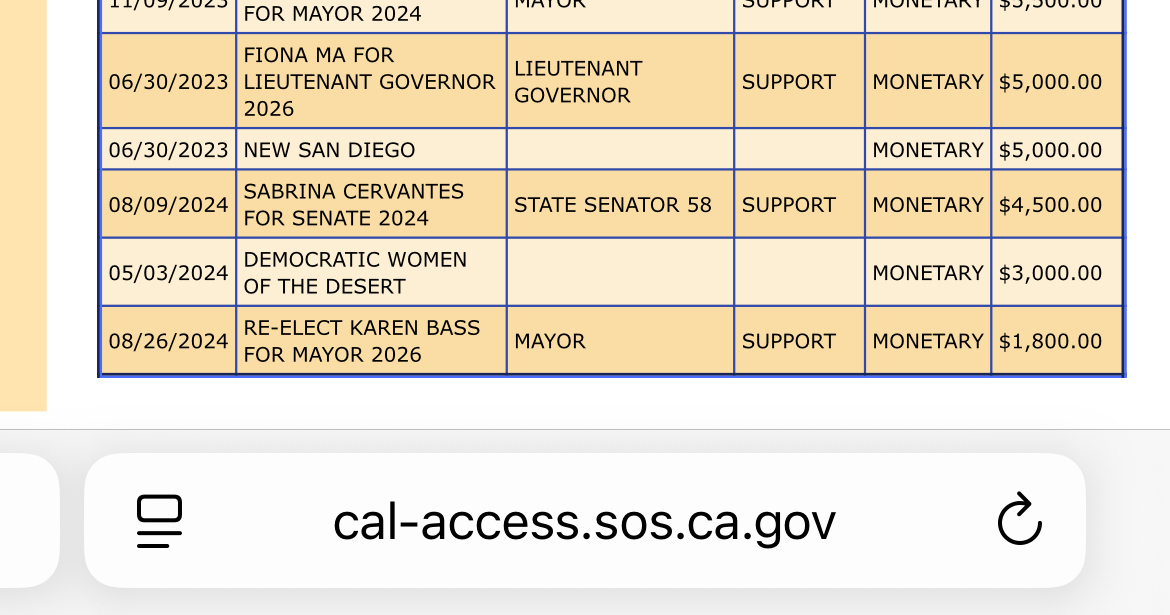 In June 2023, Cadiz opened its corporate checkbook and made a $5,000 contribution to Fiona Ma, the state treasurer now running for Lt. Governor.